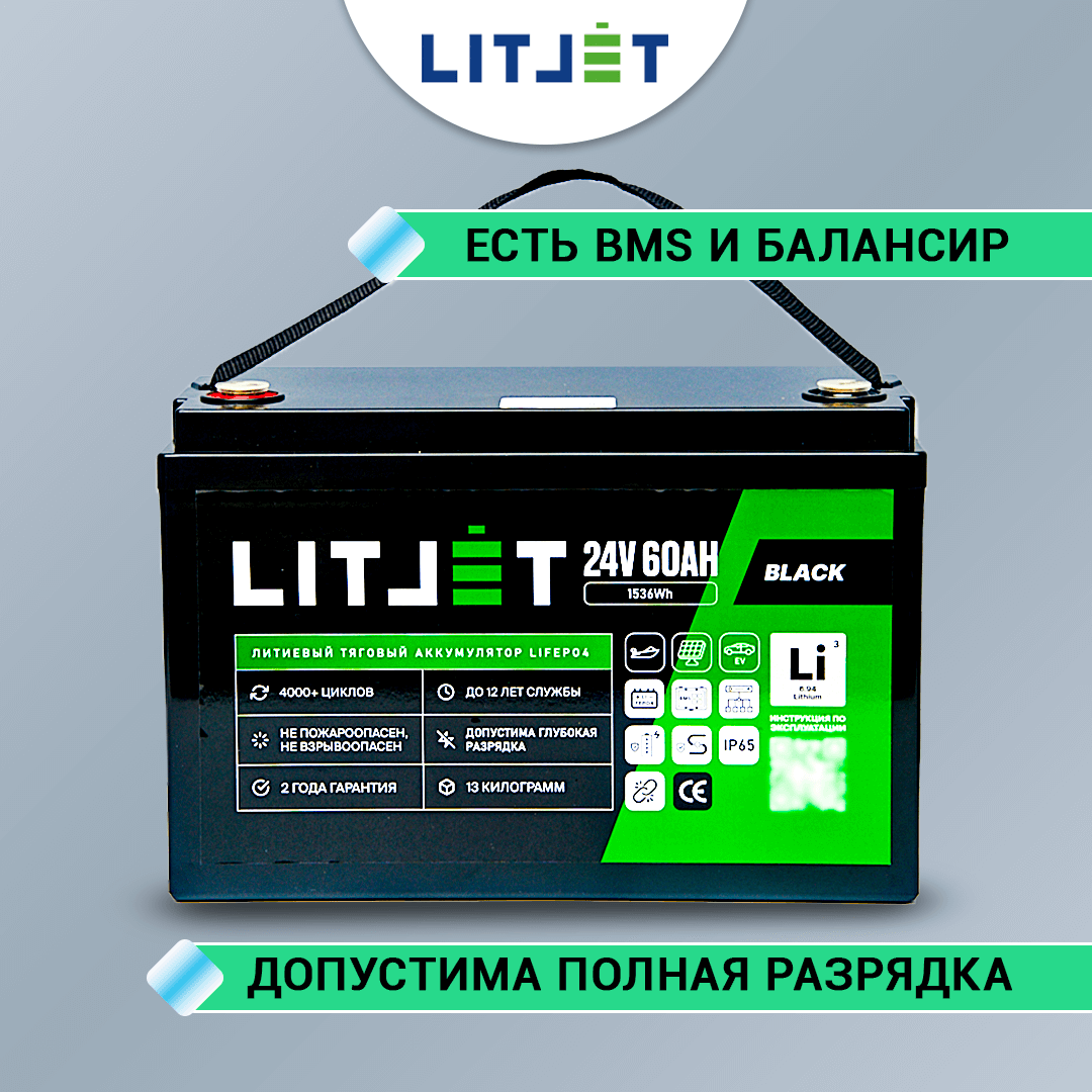 Частые вопросы по аккумулятору LITJET BLACK LiFePO4 24V 60Ah 1536Wh IP65