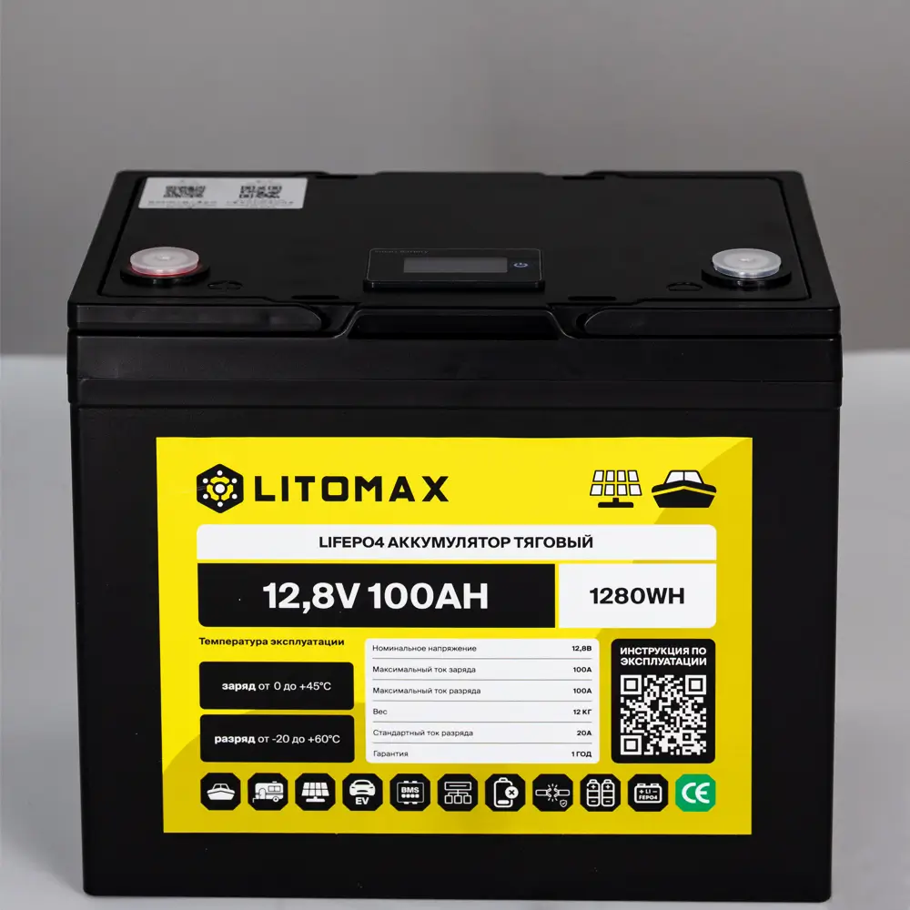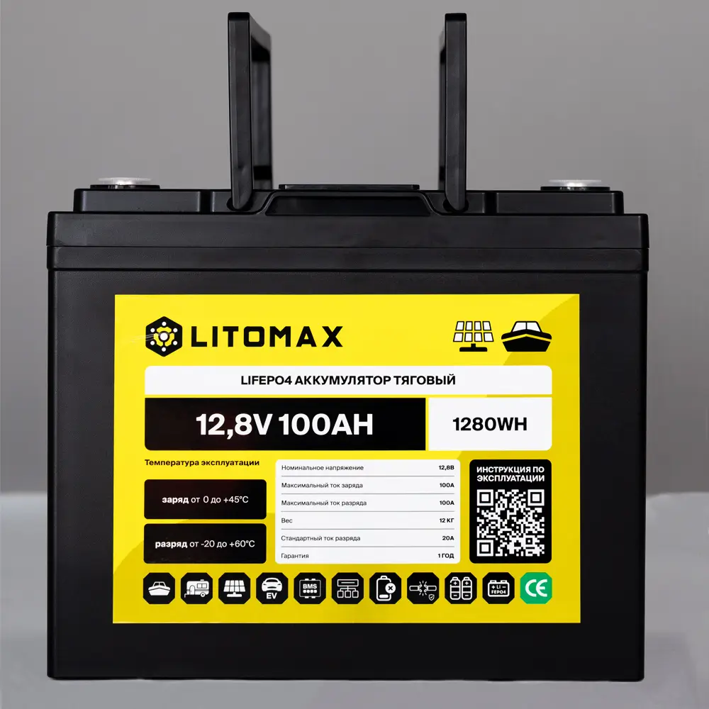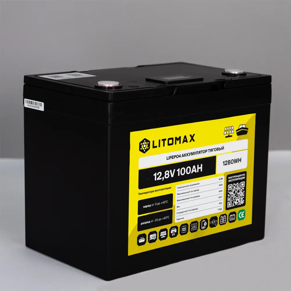Аккумулятор LitoMax LiFePO4 12,8V 100Ah  – надежный и долговечный источник энергии для лодок, катеров, морских судов, ИБП, транспортных средств, видеонаблюдения, солнечных панелей.