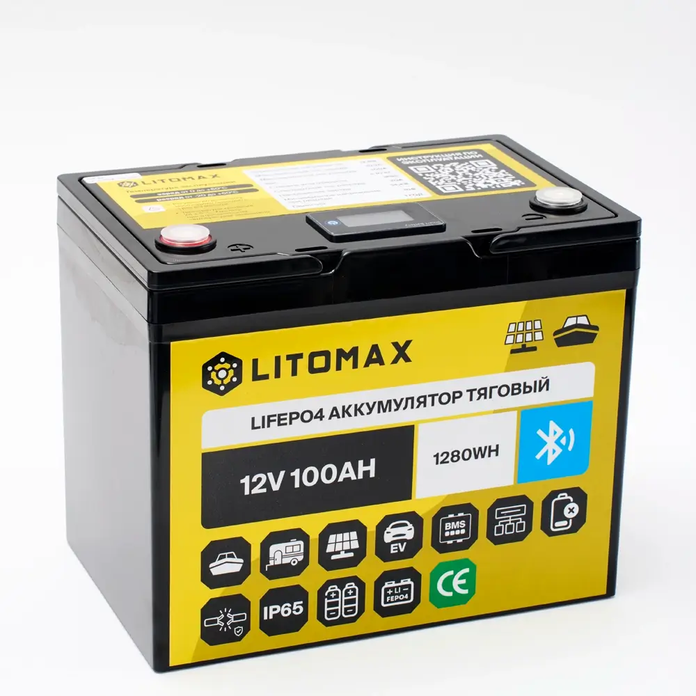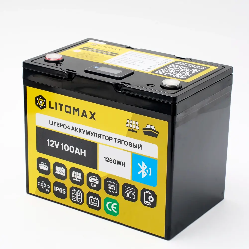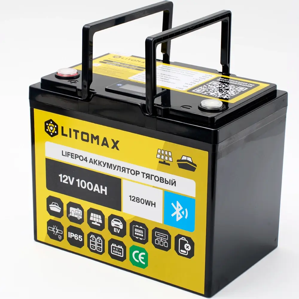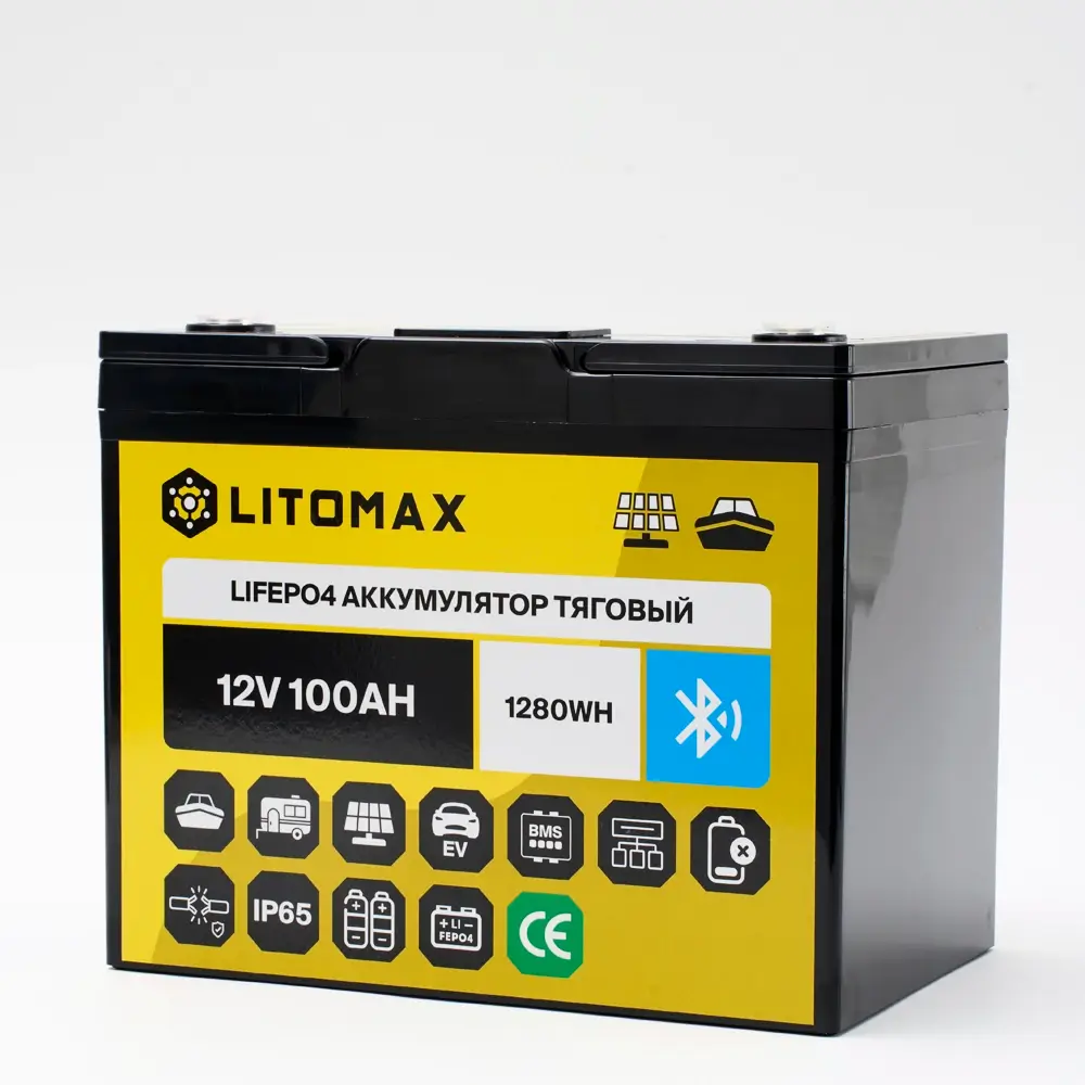Литий железо-фосфатный аккумулятор (LiFePO4) тяговый LitoMax имеет напряжение 12 вольт, предназначен для работы в глубоких циклах разряда и заряда. Не может быть использован для запуска ДВС. Относится к тяговым аккумуляторам.