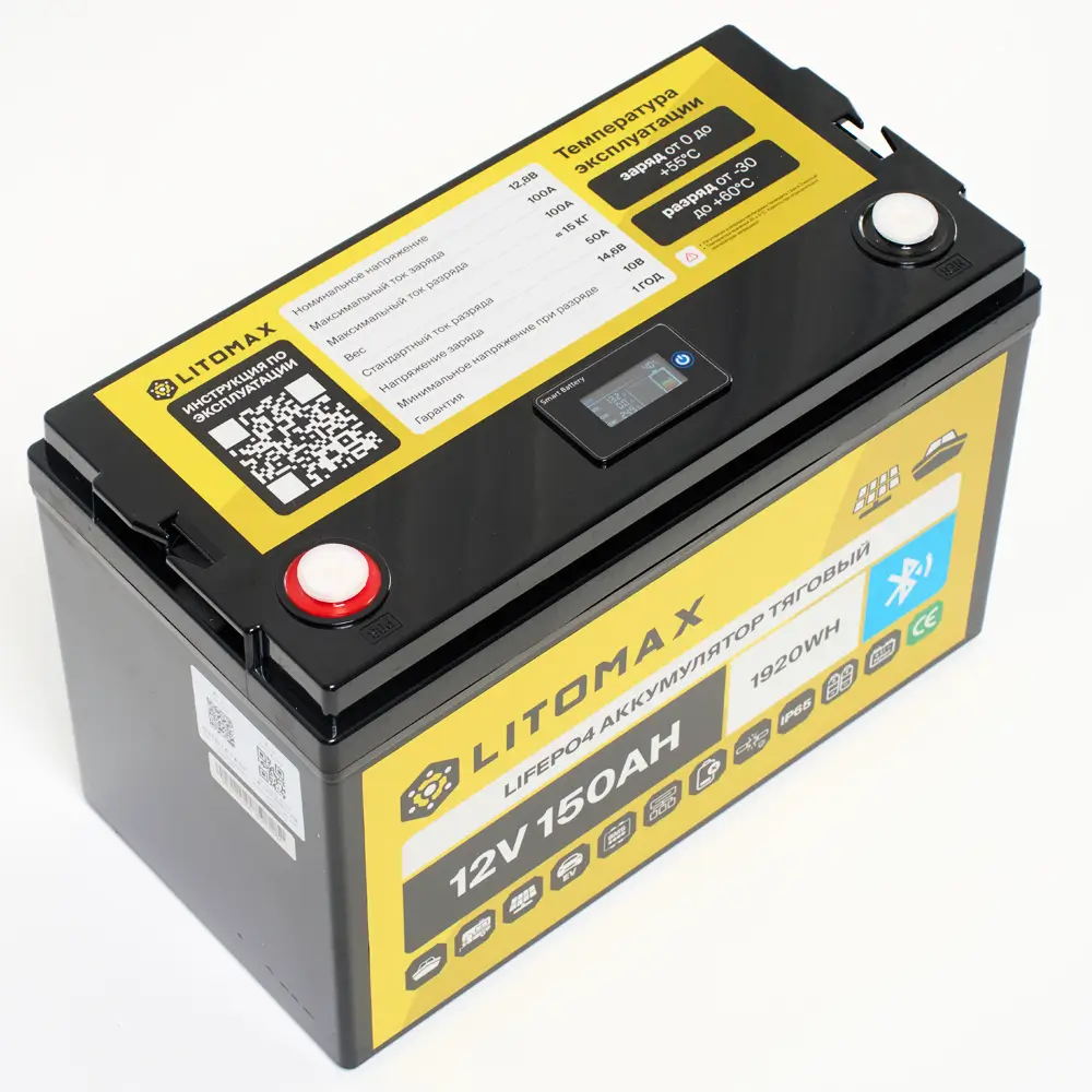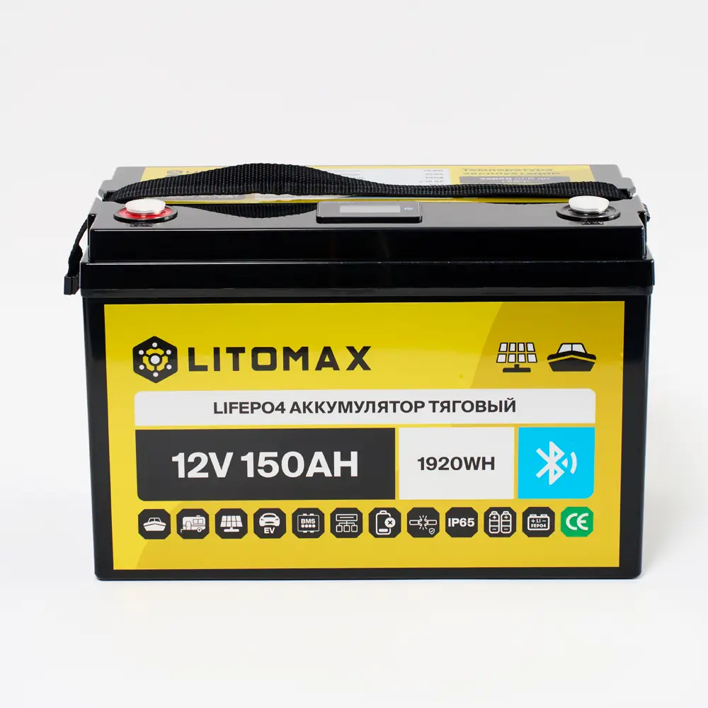 Аккумулятор LITOMAX LiFePO4 12V 150Ah с Bluetooth + small monitor – надежный и долговечный источник энергии для ИБП (бренды: Eaton, Delta Electronics, Riello, Powercom, HIDEN, APC, CyberPower и другие), охранных систем, лодок, а также компактных солнечных батарей (простая замена свинцовой батареи). Используйте подходящие зарядные устройства — это продлит срок службы аккумулятора.