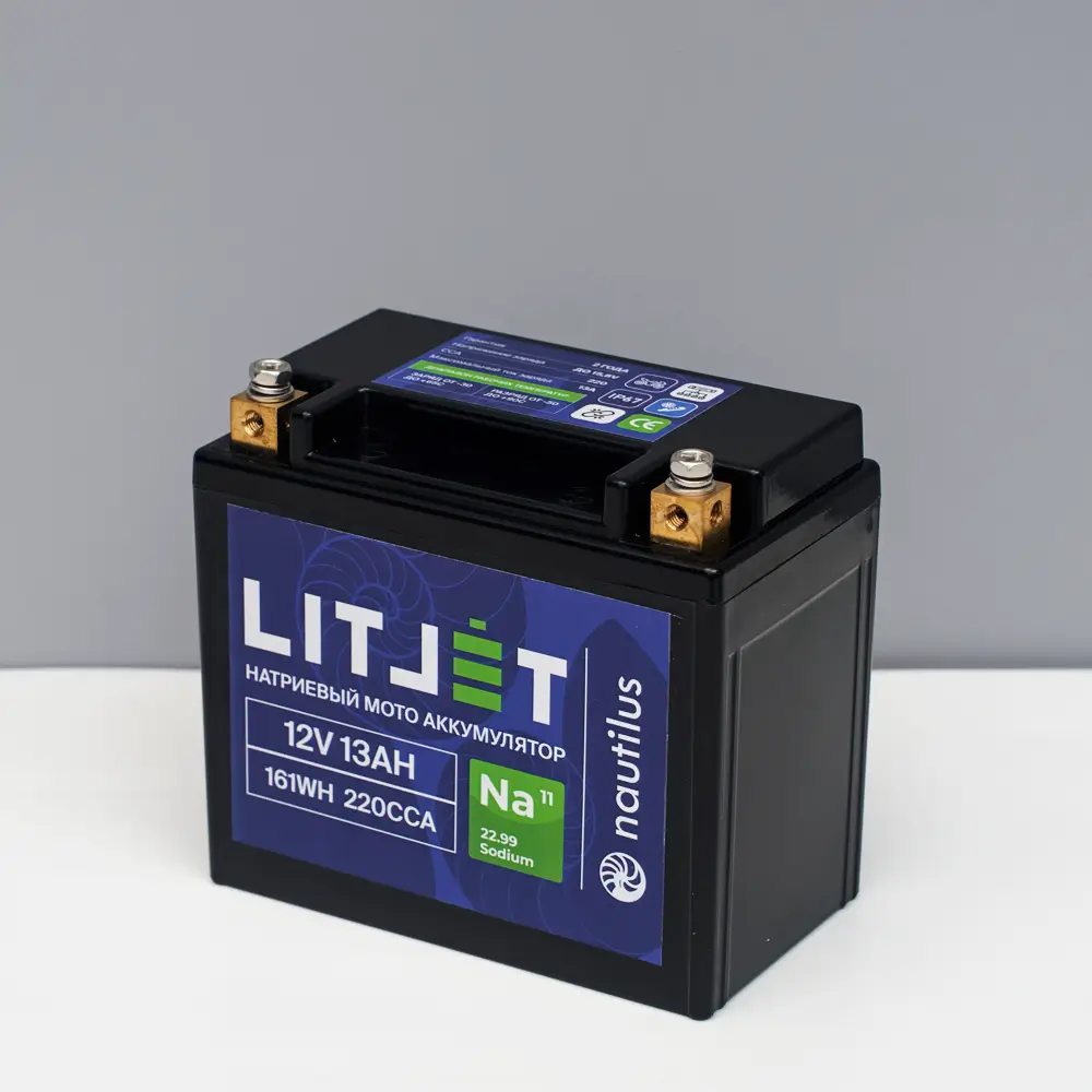 Натрий-ионный аккумулятор 12,4 В и ёмкостью 13 Ач, представляет собой один из самых долговечных и надежных источников питания на рынке. Натрий-ионные аккумуляторы — это тип аккумуляторной батареи, где в качестве носителей заряда используются ионы натрия (Na+).