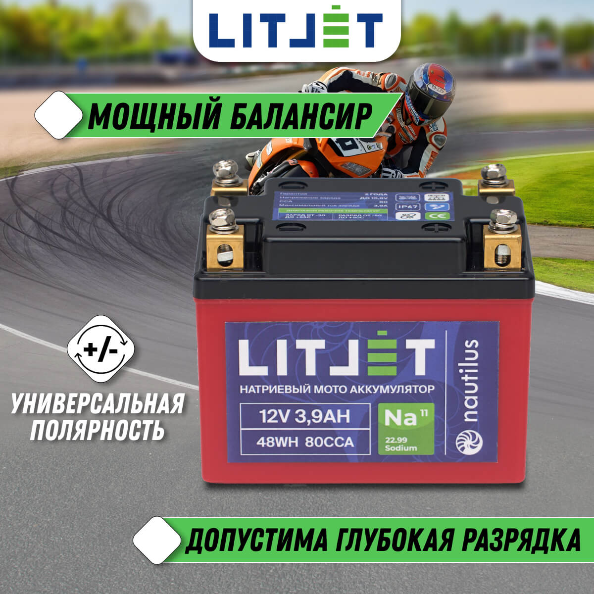 - Универсальное напряжение: Диапазон рабочих напряжений позволяет использовать 12В стартовые натрий-ионные аккумуляторы без специальных зарядных устройств или альтернаторов.