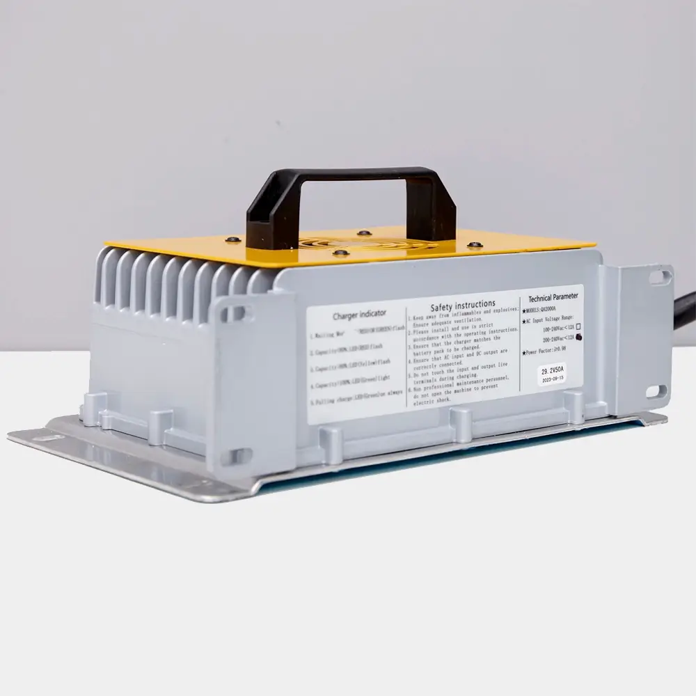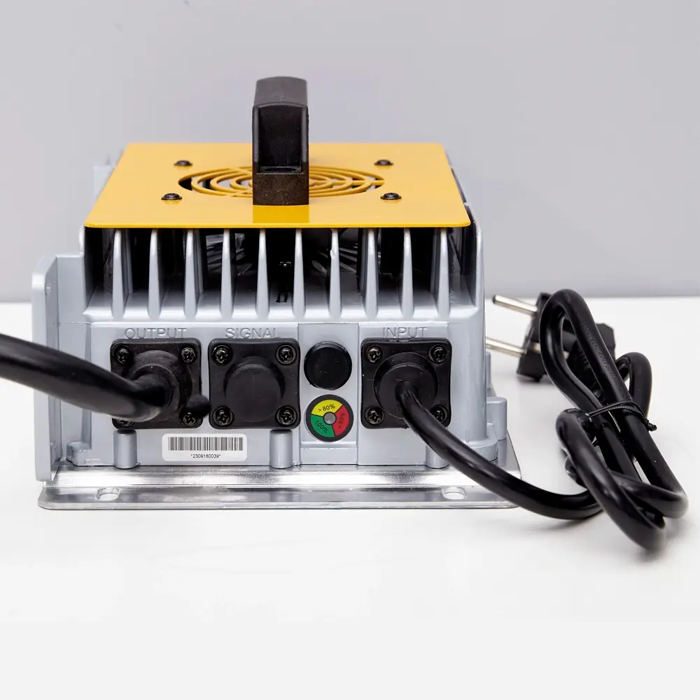 Интеллектуальное зарядное устройство для литий железо-фосфатных аккумуляторов соответствующего напряжения. Процесс зарядки контролируется автоматически и учитывает защиту от перегрева.
