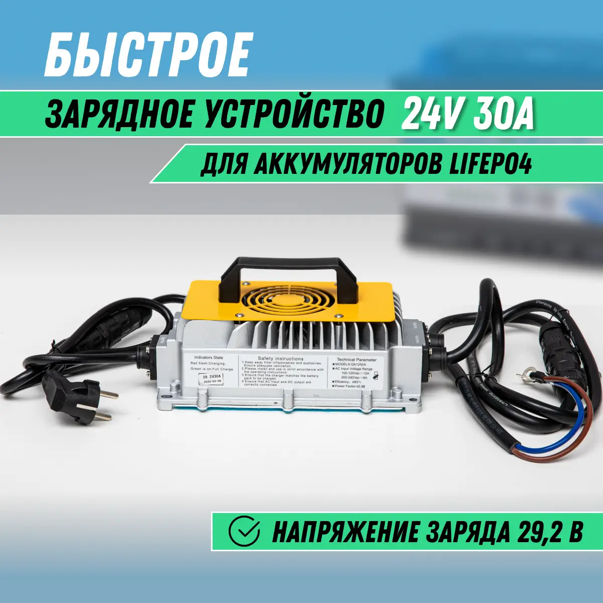 - Подходит для всех LiFePO4 (литий железо-фосфатных) аккумуляторов с напряжением заряда 29,2 В