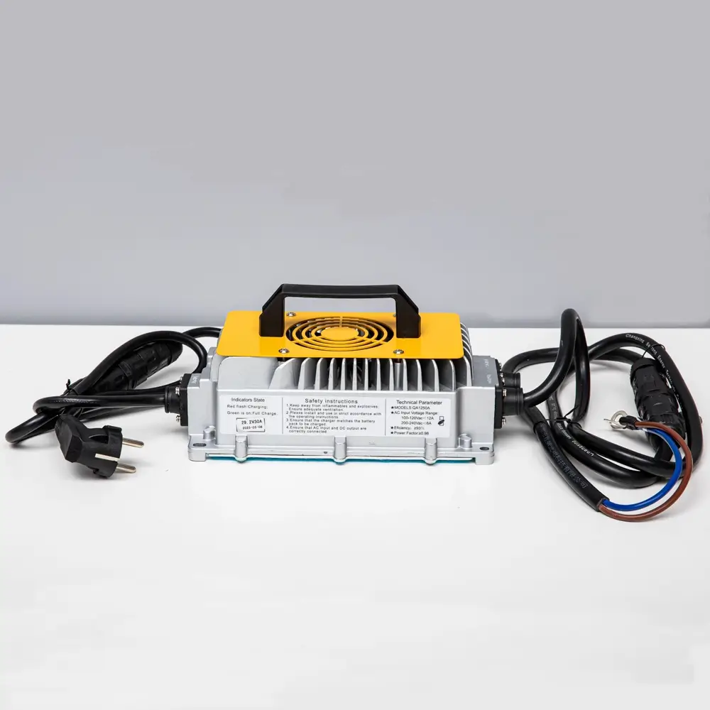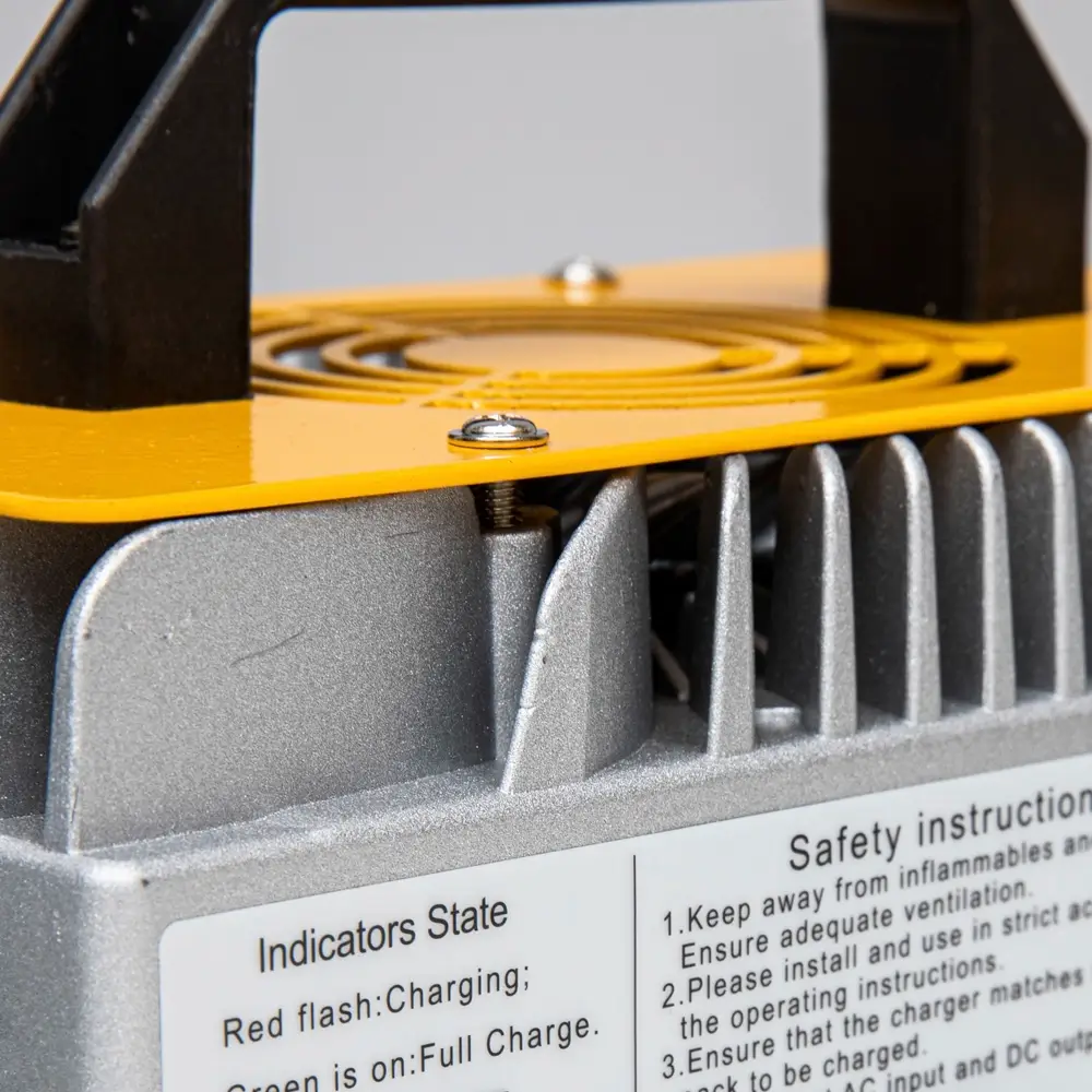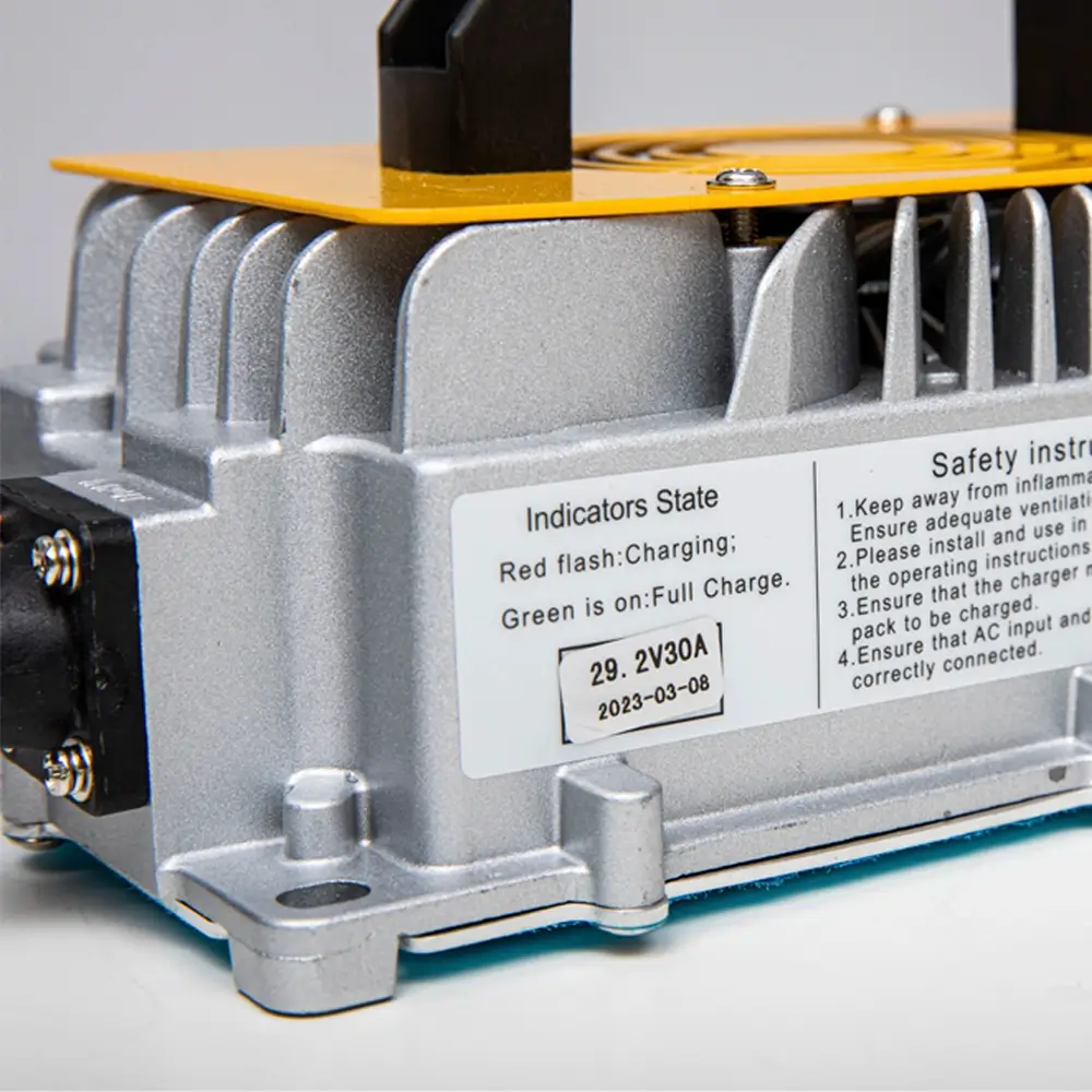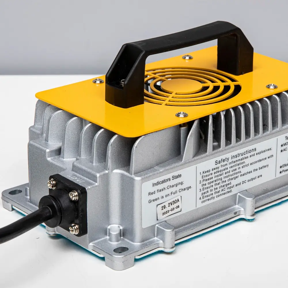 Интеллектуальное зарядное устройство для литий железо-фосфатных аккумуляторов соответствующего напряжения. Процесс зарядки контролируется автоматически и учитывает защиту от перегрева.