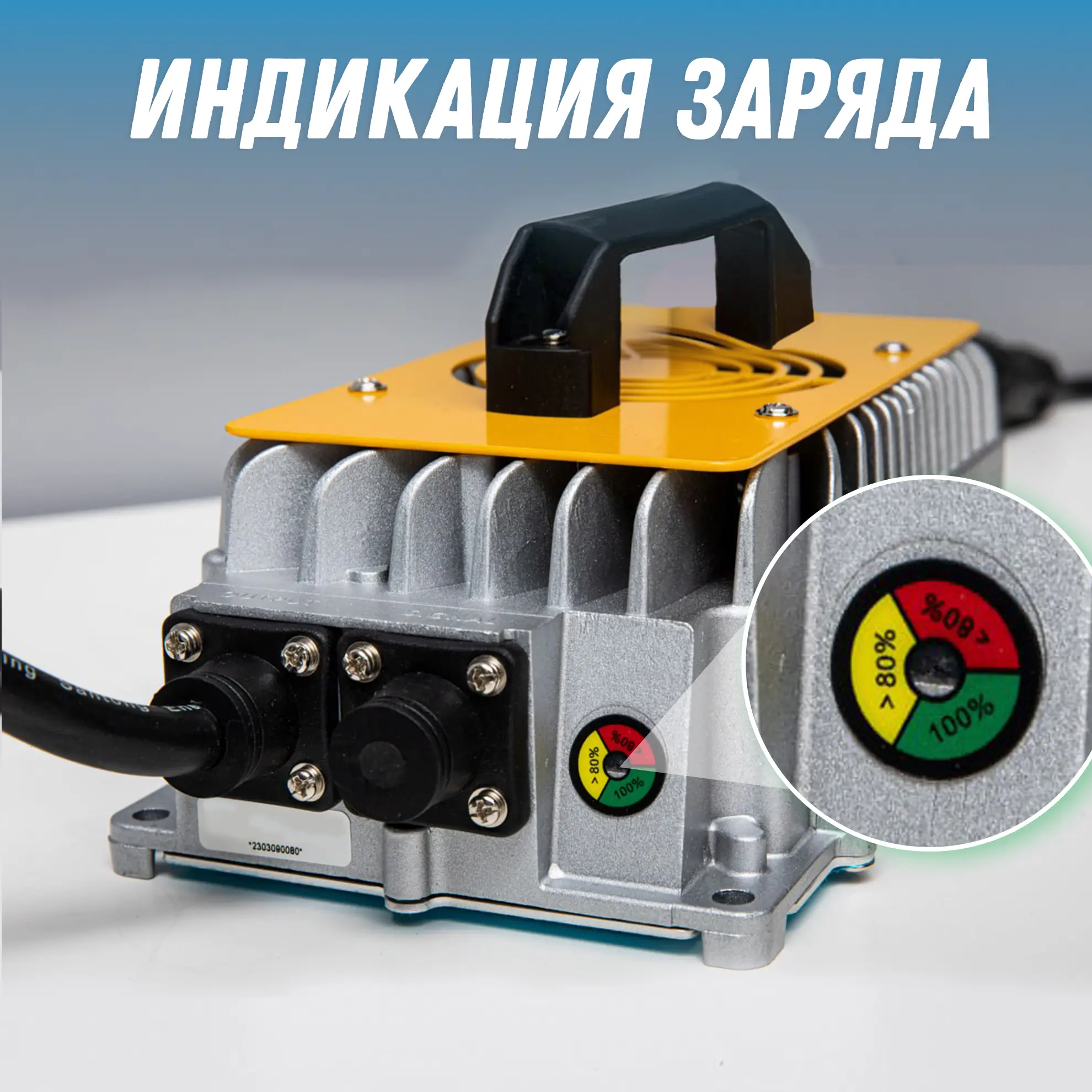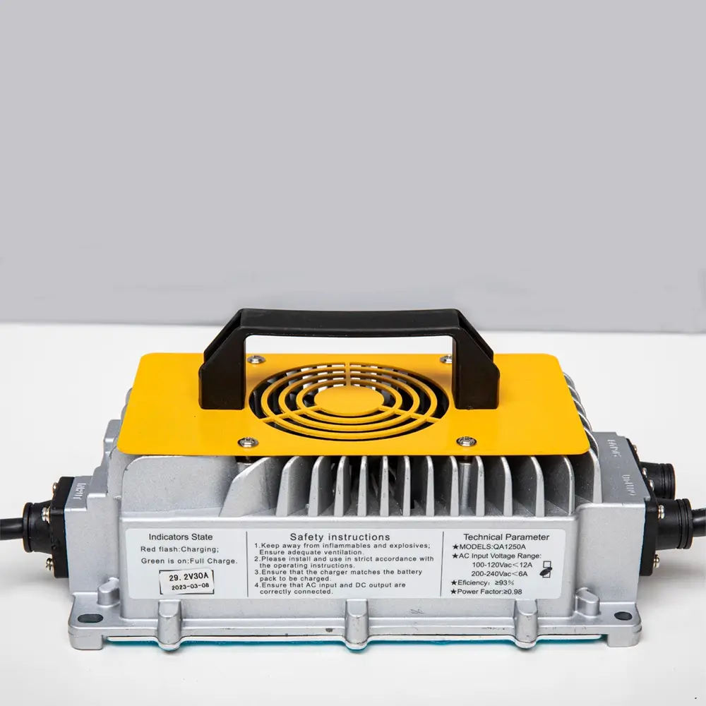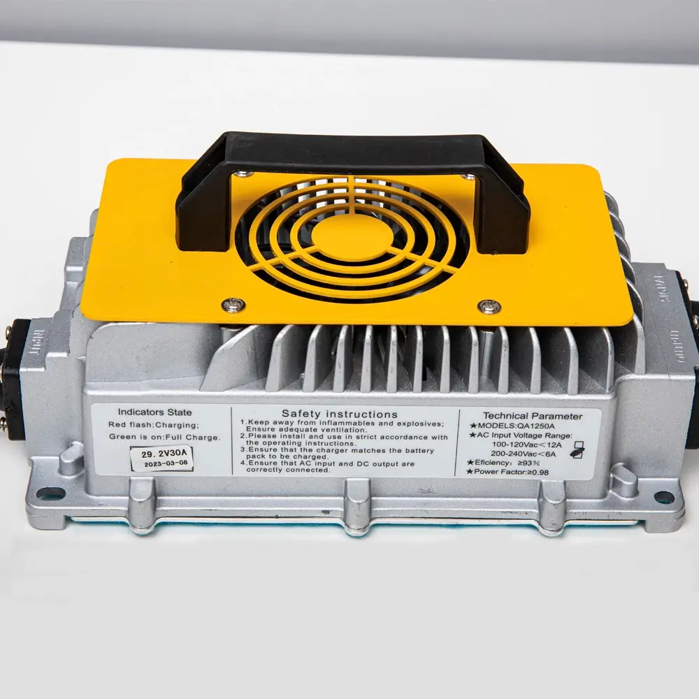 Интеллектуальное зарядное устройство для литий железо-фосфатных аккумуляторов соответствующего напряжения. Процесс зарядки контролируется автоматически и учитывает защиту от перегрева.
